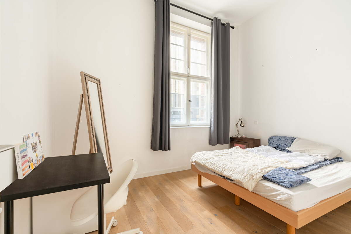Das Schlafzimmer bietet eine praktische Nische, die als begehbarer Kleiderschrank genutzt werden kann. Das moderne Badezimmer ist mit einer Badewanne ausgestattet.
