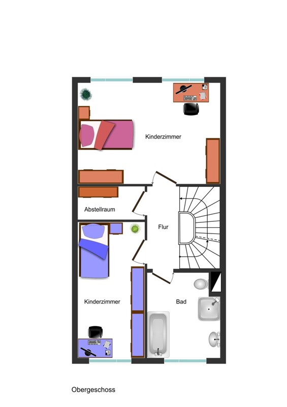 4 großzügig geschnittene und helle Zimmer, 2 Bäder und ein Gäste WC- hier ist Platz für eine ganze Familie.